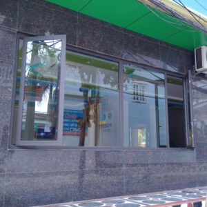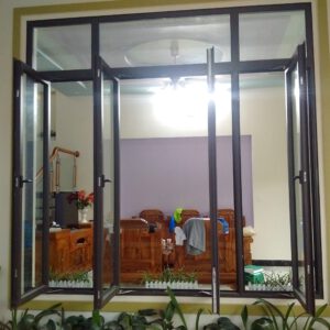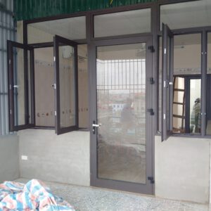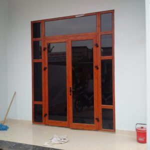 - Cửa đi 2 cánh mở quay + 02 vách kính cố định :