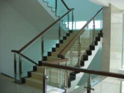 - Tay vịn inox: Phần tay vịn có tác dụng cố định tấm kính, chi tiết này được sản xuất bằng Inox 304 có tính chất không han gỉ dưới điều kiện thời tiết ngoài trời.